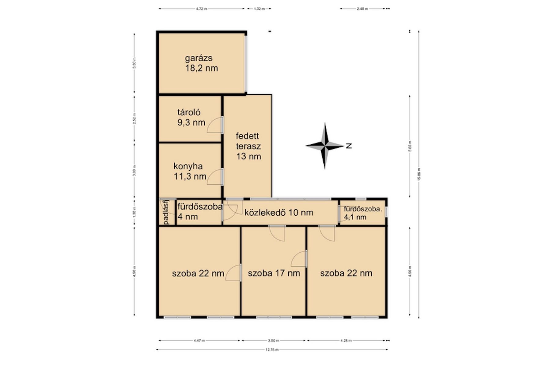 - Helyiségek: a ház 3 tágas szobával és 2 fürdőszobával rendelkezik, kényelmes életteret biztosítva minden családtag számára, a konyha külön helyiségben található, de ez is könnyen alakítható ízlés szerint ha amerikai konyhás nappalit szeretne